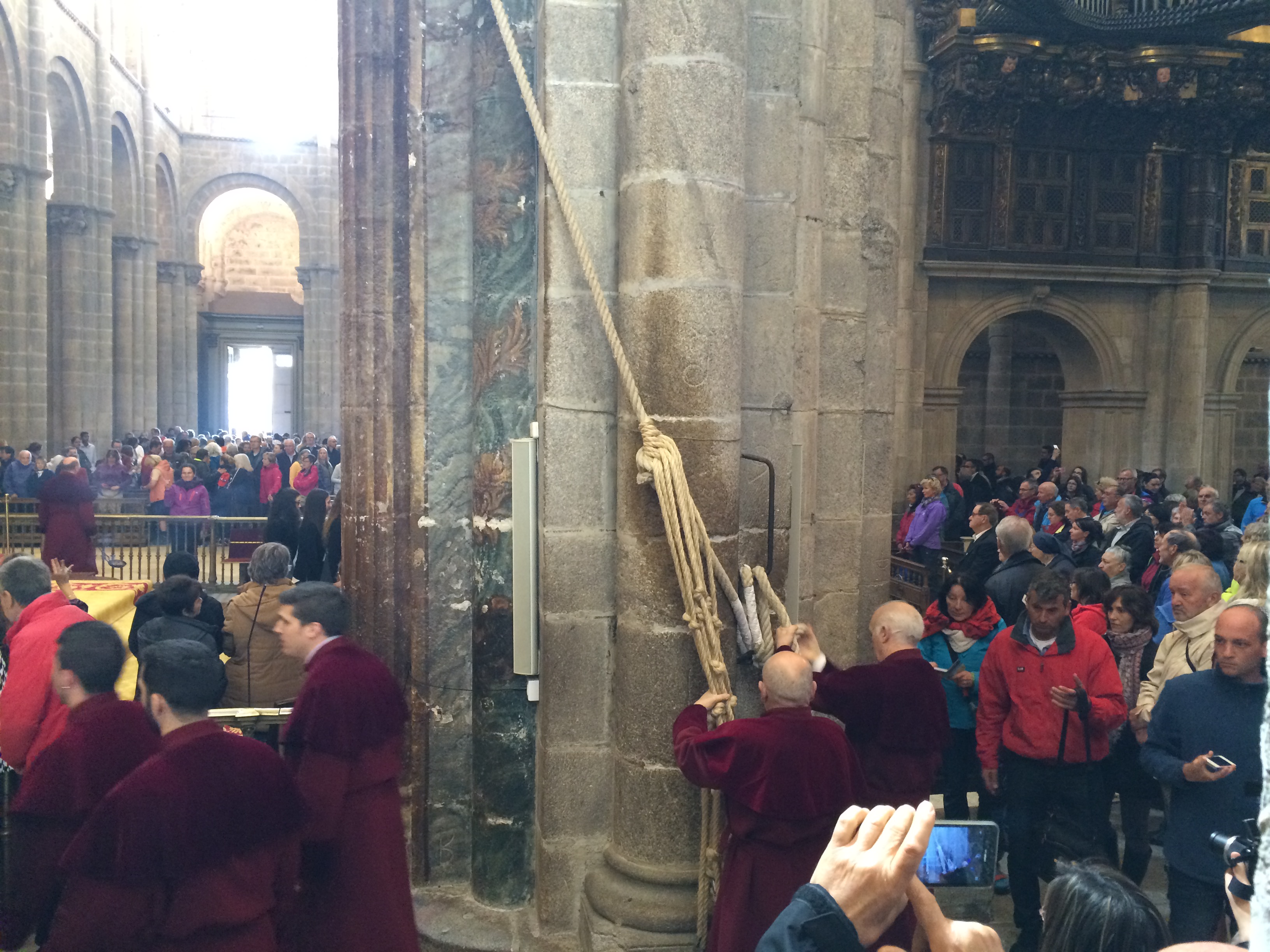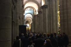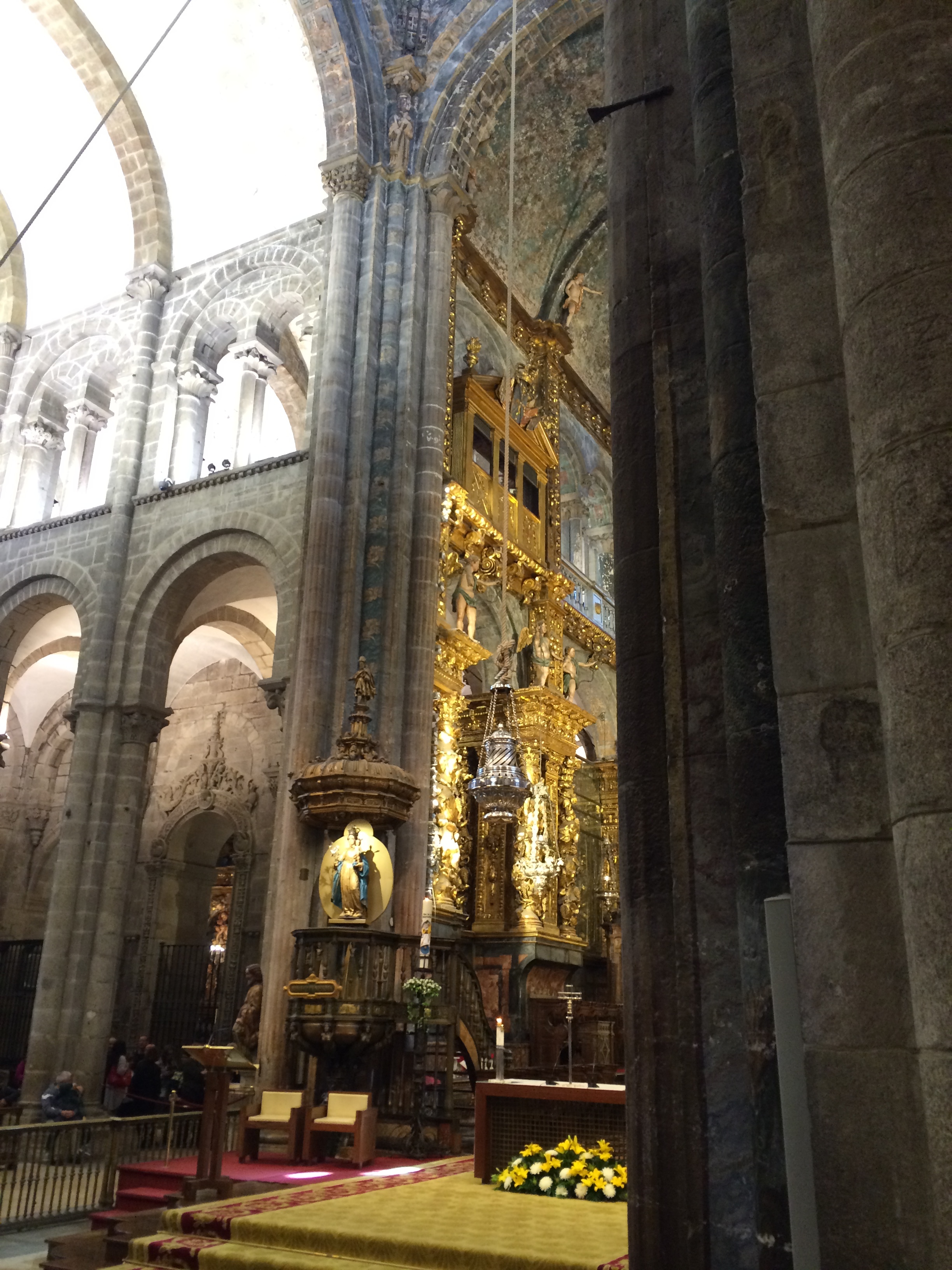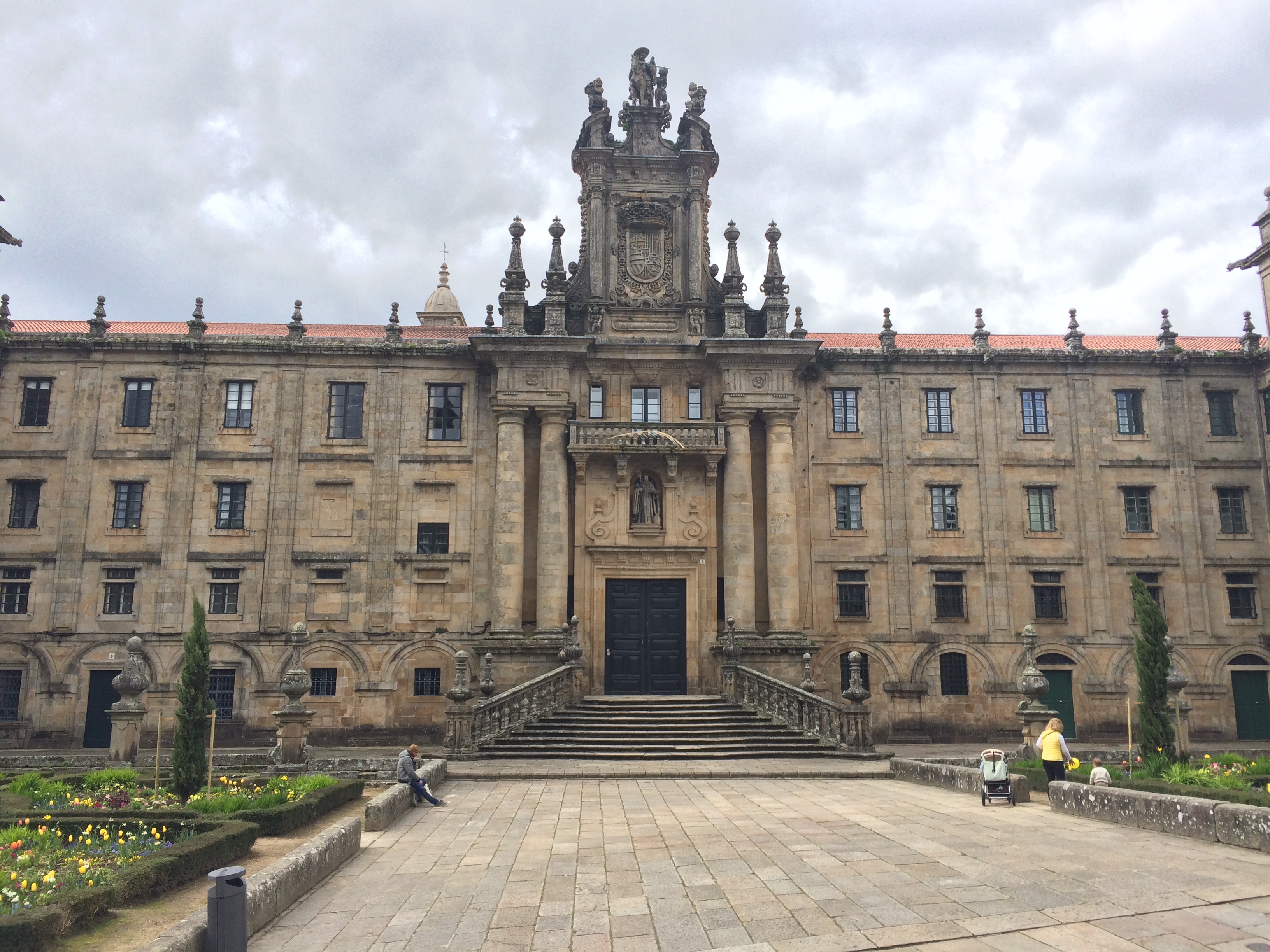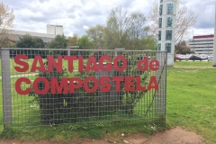 Am späten Nachmittag war es dann soweit: Das bereits kräftig verzierte Ortseingangsschild stand vor mir. Nach zwei weiteren Markierungen meinerseits, ging es in die Altstadt zur berühmten Kathedrale. Nach einigem herumirren, hatte ich dann auch das Pilgerbüro gefunden. Am Eingang wird erstmal der Inhalt meines Rucksacks sowie das Vorhandensein meines Pilgerausweises von der Security gecheckt. Drinnen werde ich dann aber freundlich an einem Schalter begrüßt und nach wenigen Fragen und kurzem Check meiner Stempel wurde mir die Urkunde ausgestellt. Voller Stolz konnte ich mich nun mit meinem Hotelzimmer belohnen und mich erstmal ne Stunde in die Badewanne setzen. Dazu Schokokekse und Musik… das Leben ist schön ?