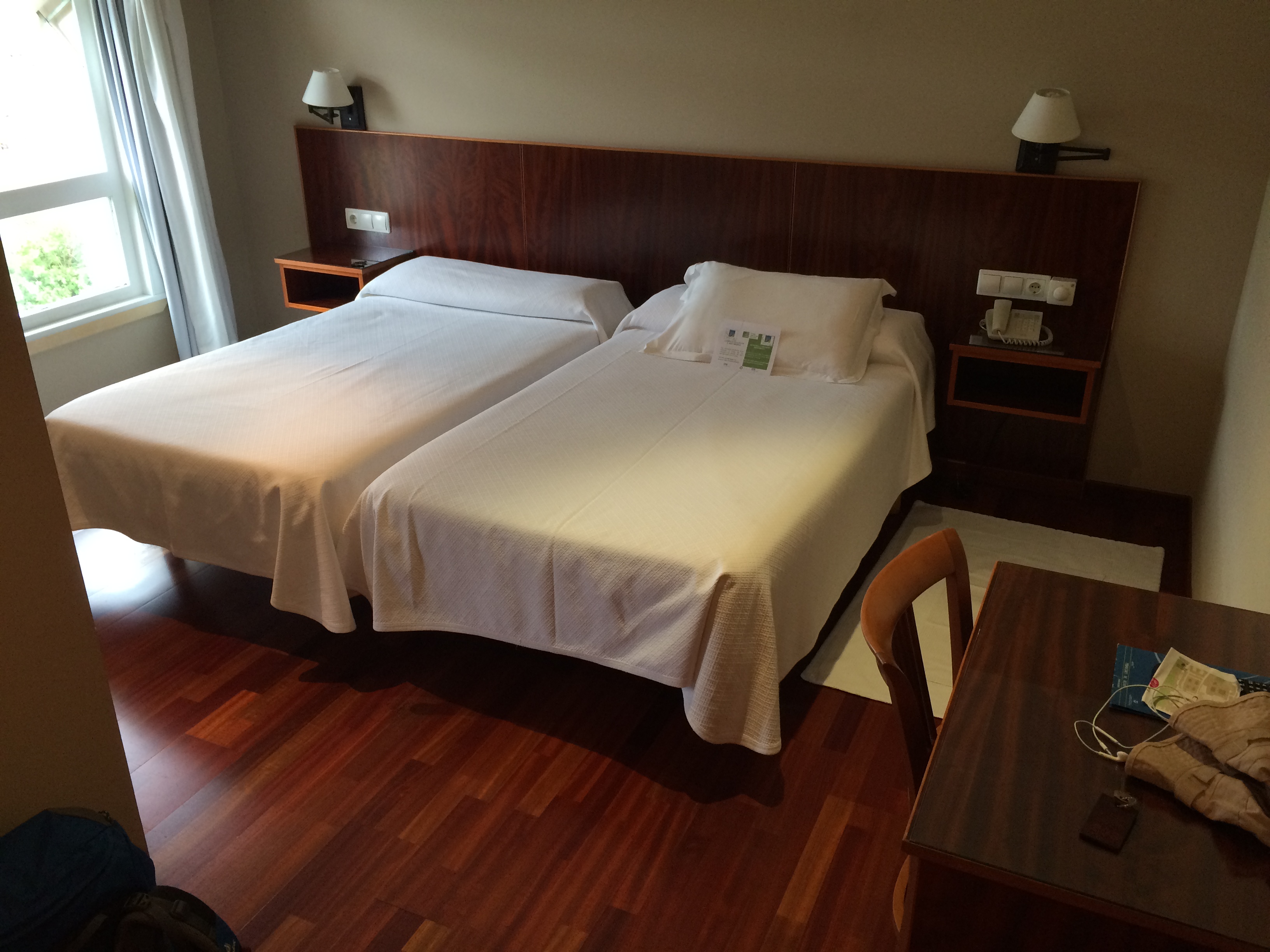 Nach einem ordentlichen Frühstück mit viel Kaffee und „richtigem“ Brot – nicht das sonst übliche weiße Luftgebäck – ging es heute los; immernoch ohne Plan, bis wohin ich heute kommen will. Der Himmel war voll grauer Regenwolken, aber es blieb vorerst trocken. Nach ca. 10 km hat mich eine Bar angelacht. Kaum hatte ich meinen Kaffee bestellt, begann draußen der Wolkenbruch… ich war zufrieden ?. Wie in fast jeder Bar, gab es auch hier WLAN. Während ich also Zeit hatte zu warten, bis der Regen nachlässt, habe ich spontan ein Hotelzimmer für die nächsten zwei Nächte in Santiago gebucht. Nun hatte ich also mein Ziel für heute zwingend festgelegt und ich konnte frohen Mutes weiterlaufen. Die Gewissheit, heute anzukommen, steigerte meine Motivation ungemein, und die paar Regentropfen zwischendurch konnten meine Laune nicht mehr trüben.